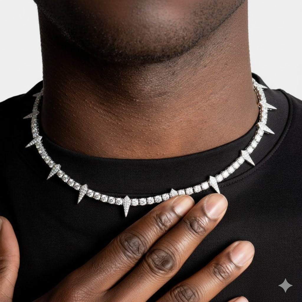 Cada eslabón combina la solidez del acero inoxidable 904 con el brillo impecable de la moissanita premium, logrando una pieza que atrae miradas y proyecta autoridad.