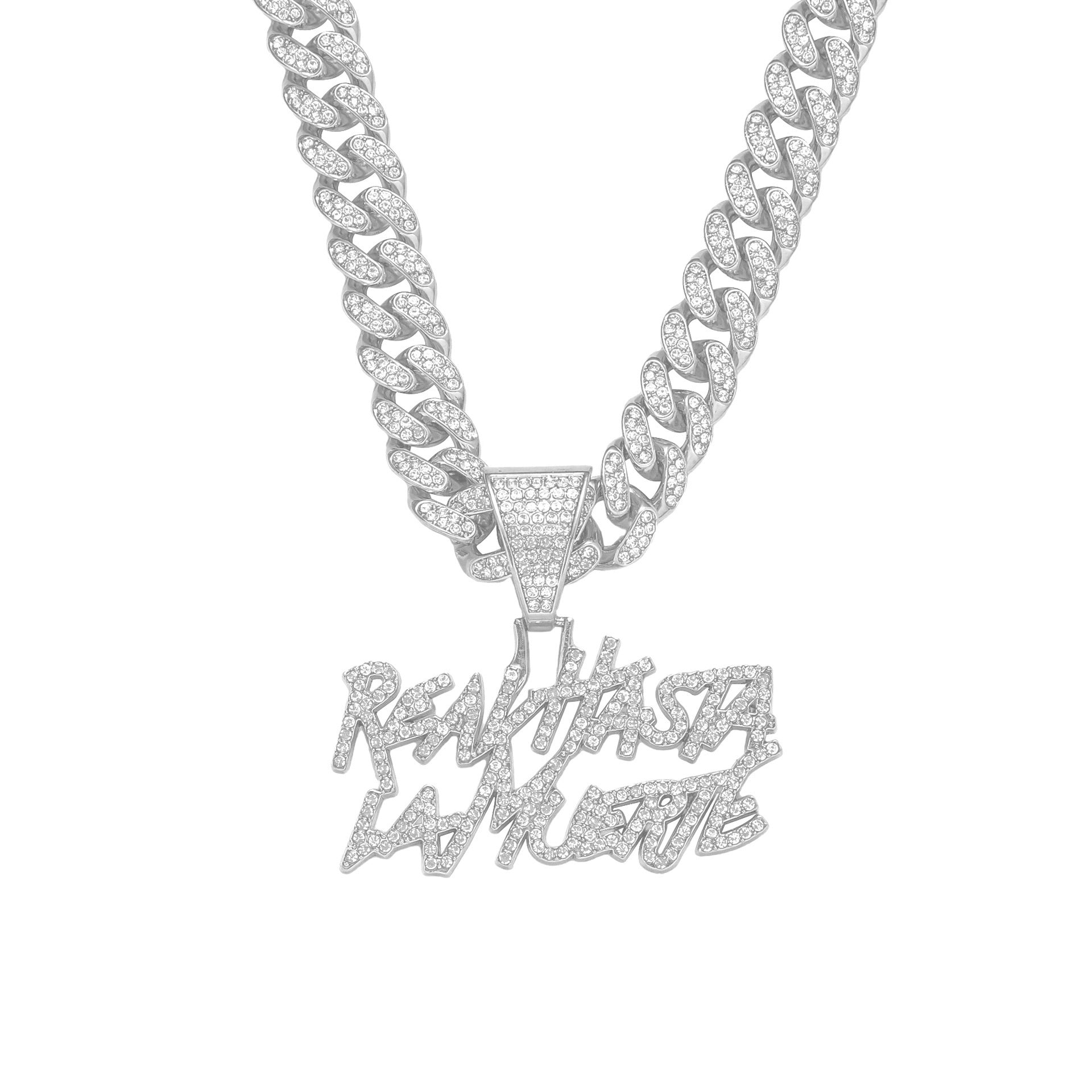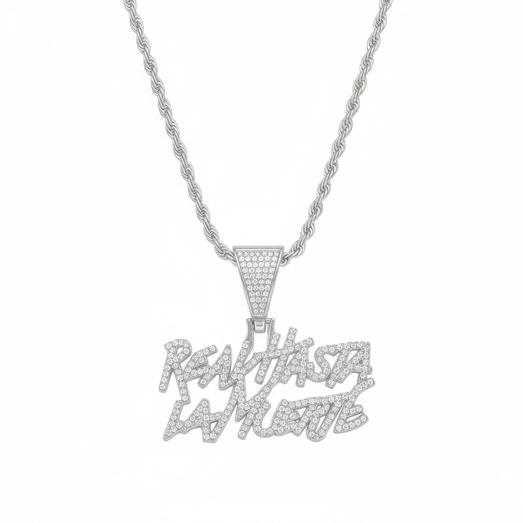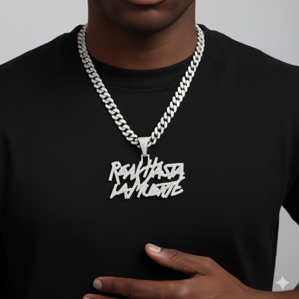 La calle se respeta, y este collar lo deja claro. Acabado en acero inoxidable 904 con moissanitas brillando como VVS, es una pieza que representa lealtad, fuerza y estilo real.